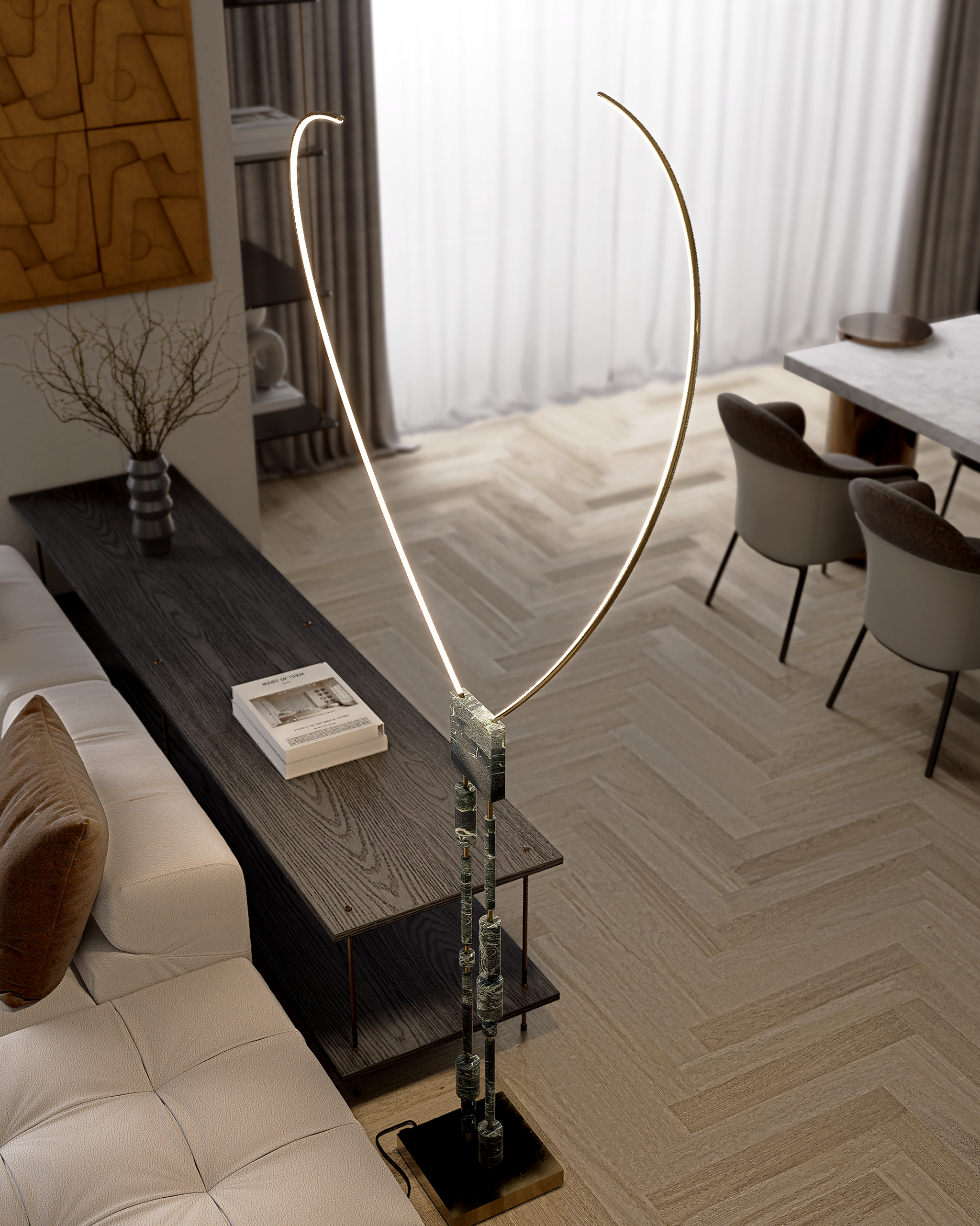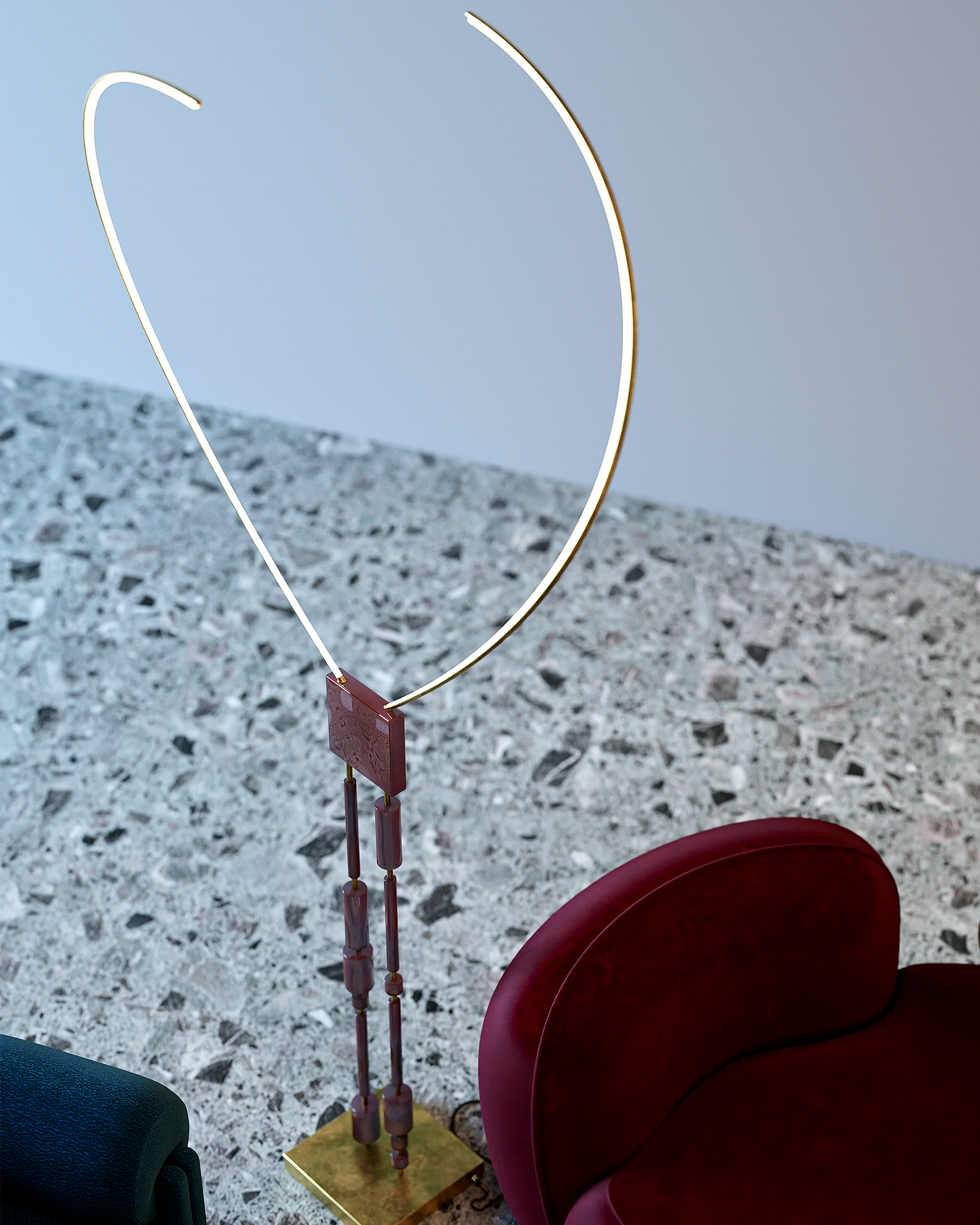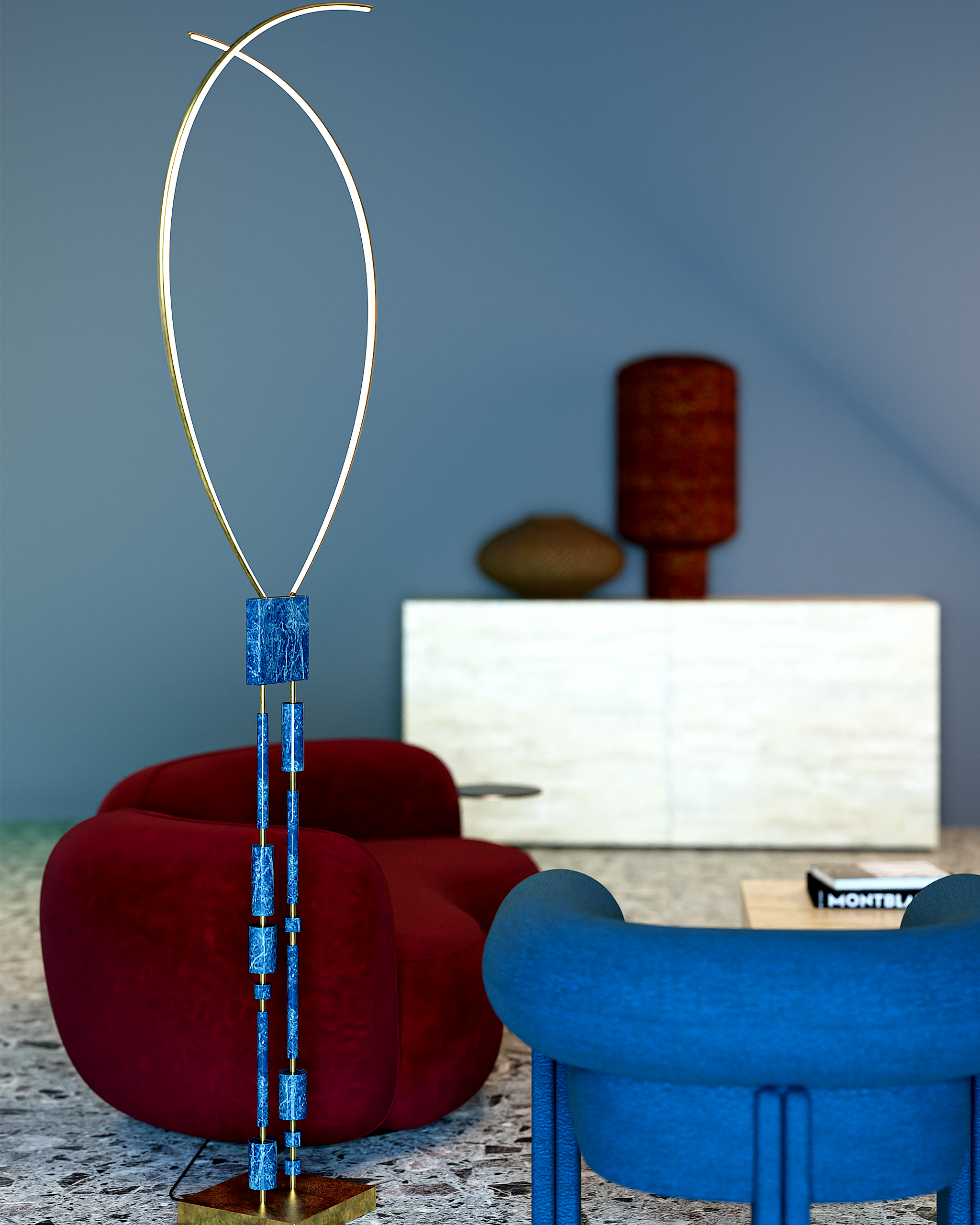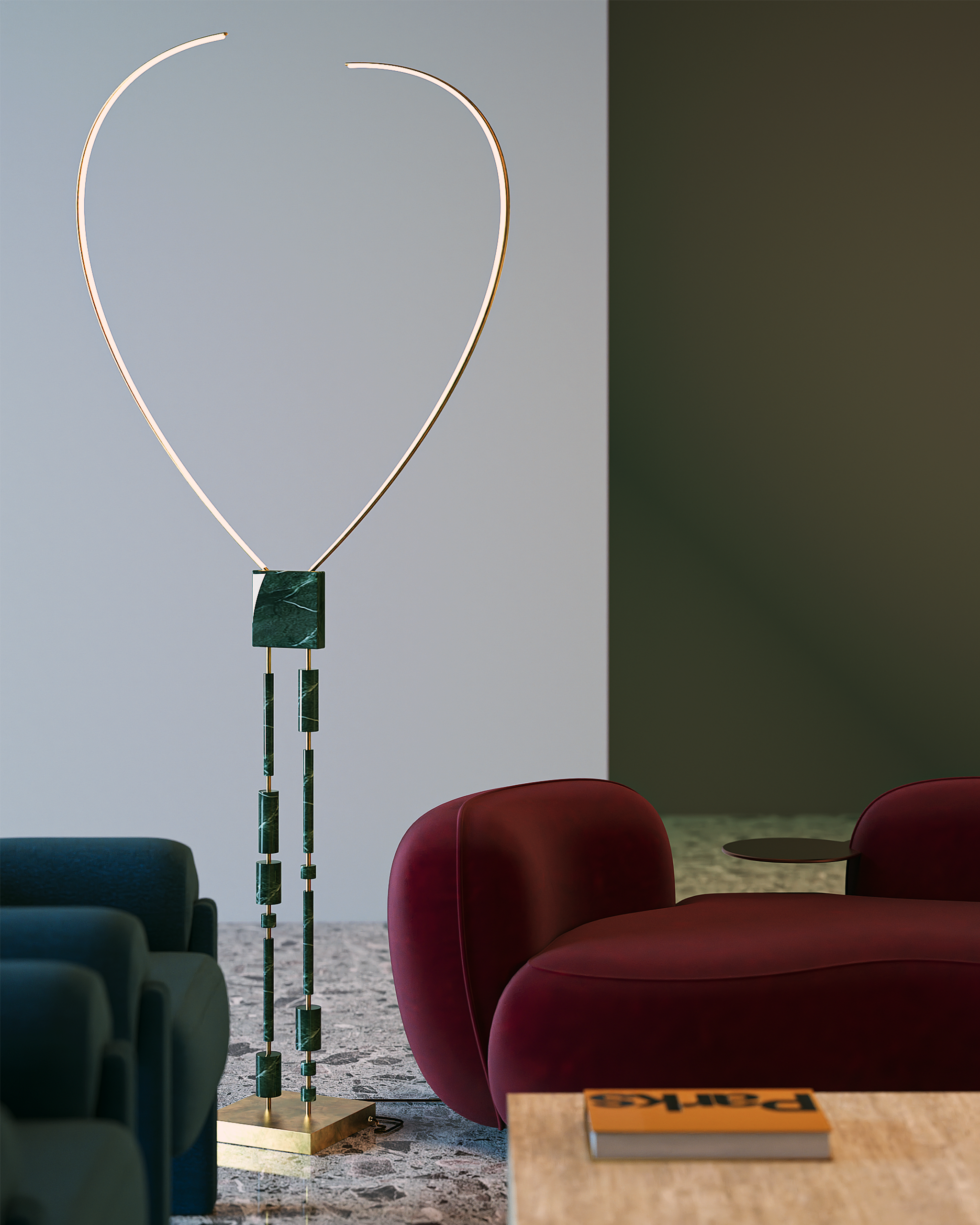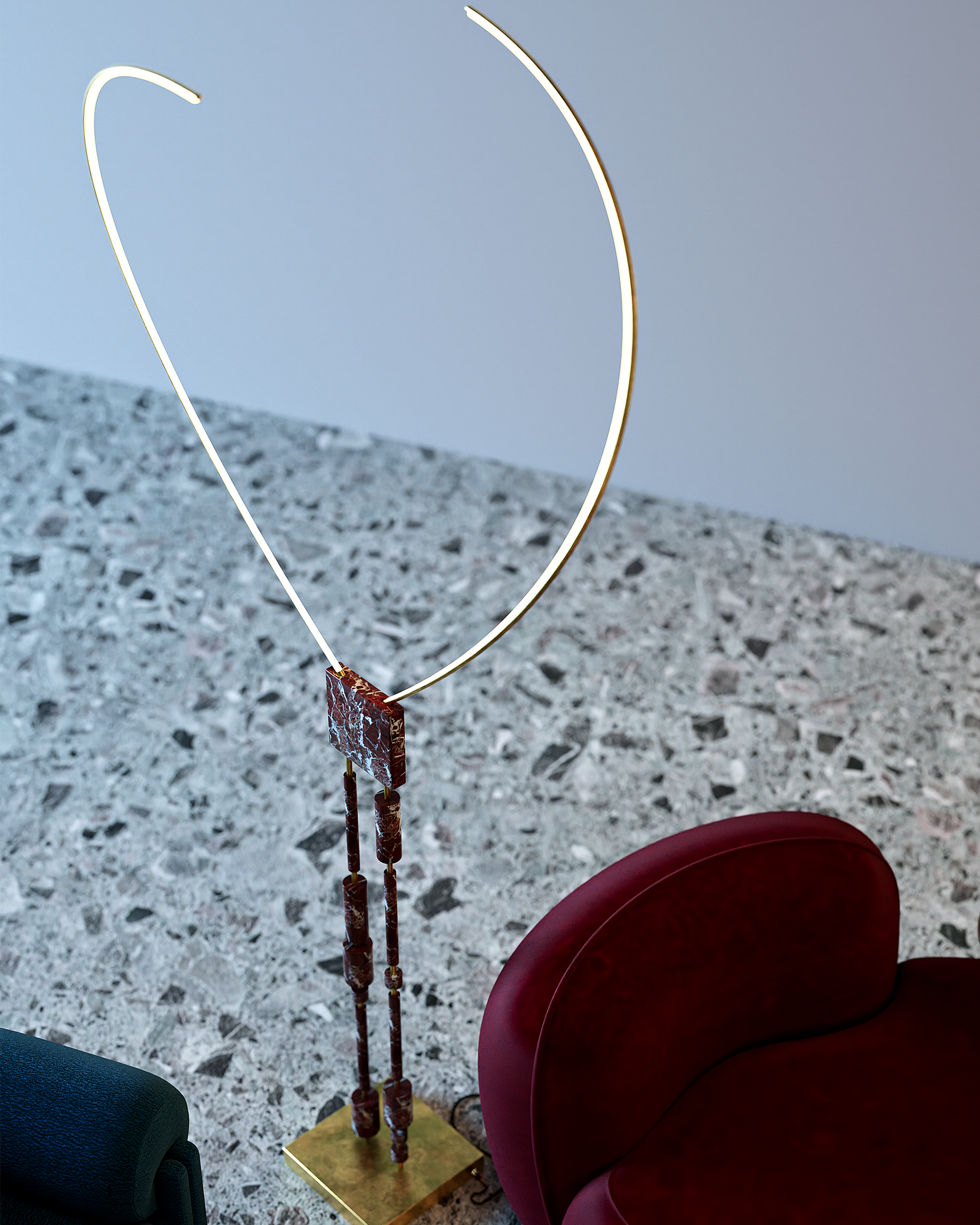 Floor lamp made of marble (or resin or ceramic) and tubular brass.