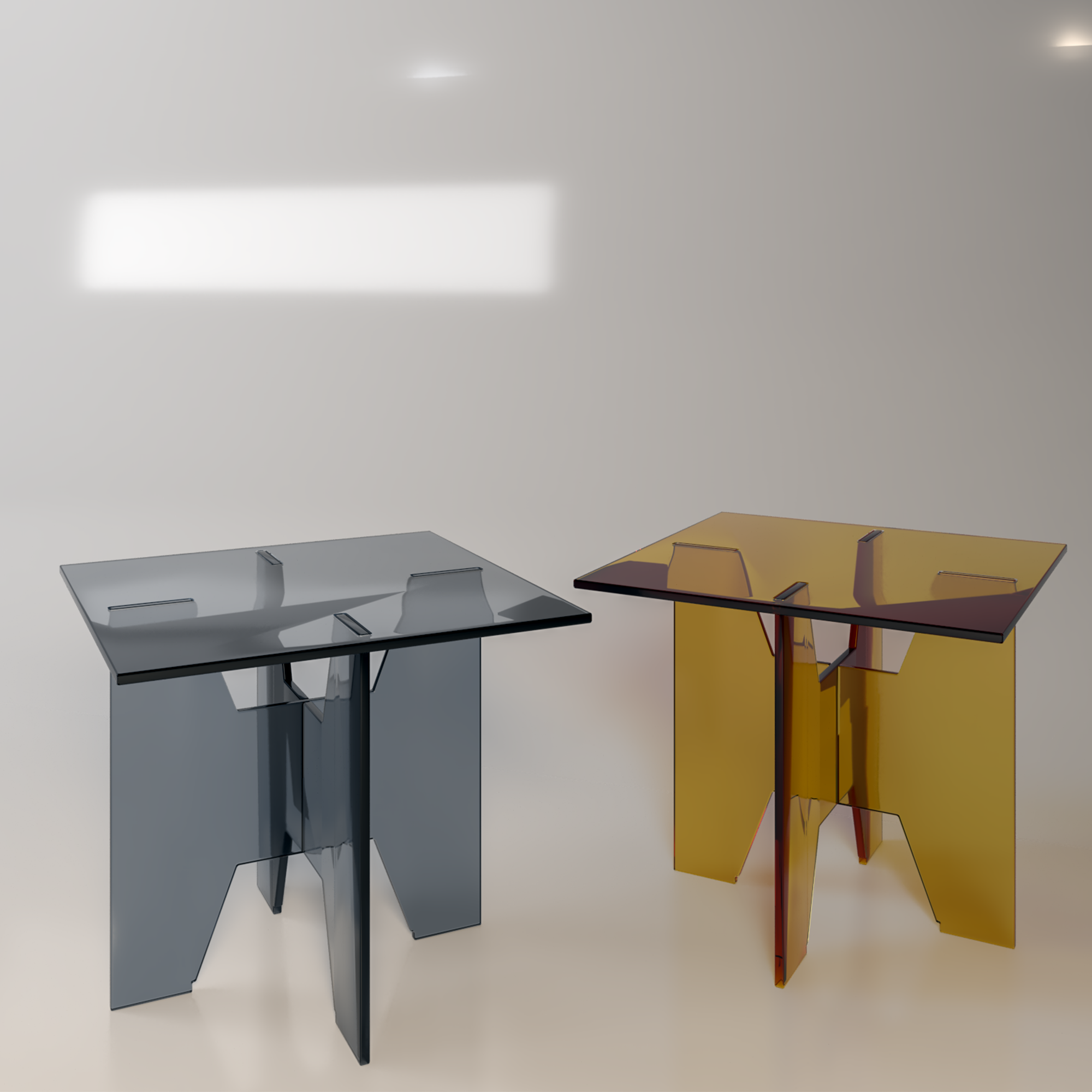 I wanted to experiment with laser-cut PMMA to create a lamp and a coffee table that doesn’t require any glue or screws, following the Japanese “sashimono” technique.