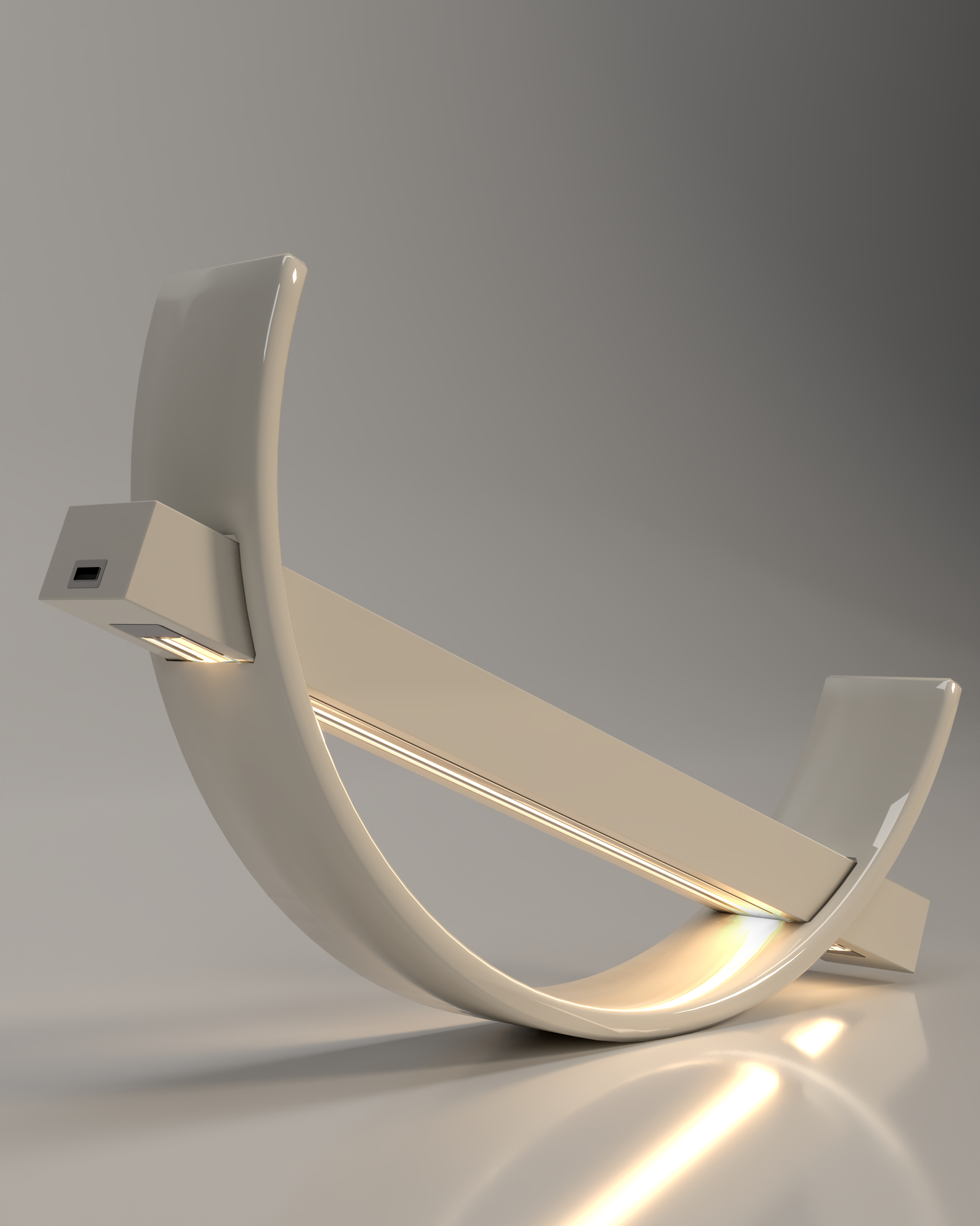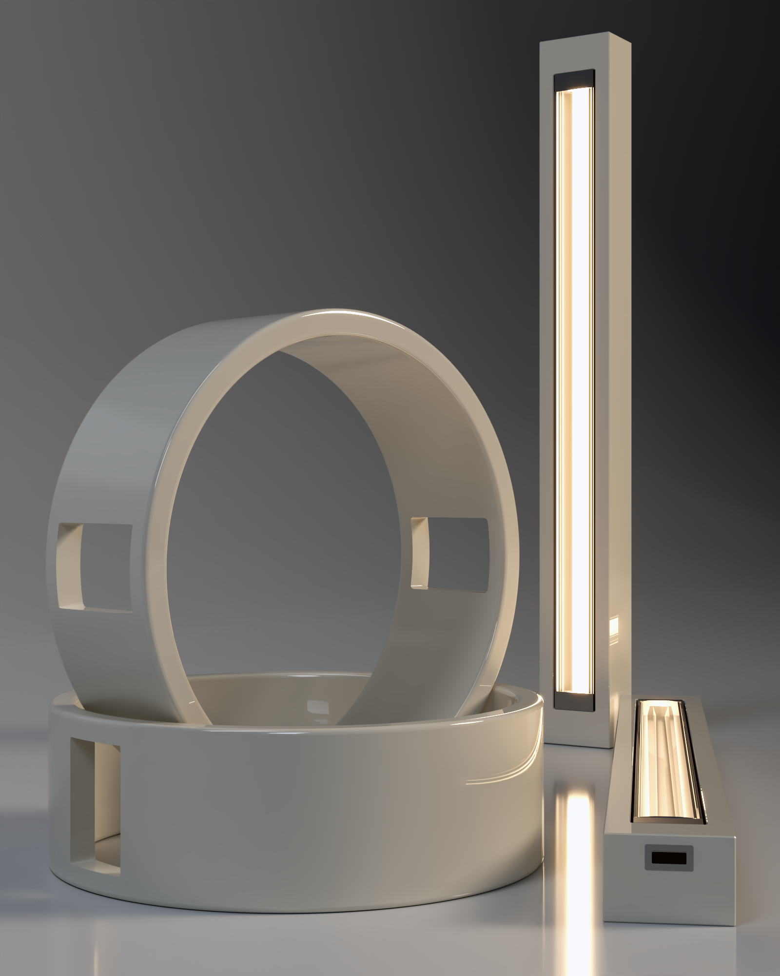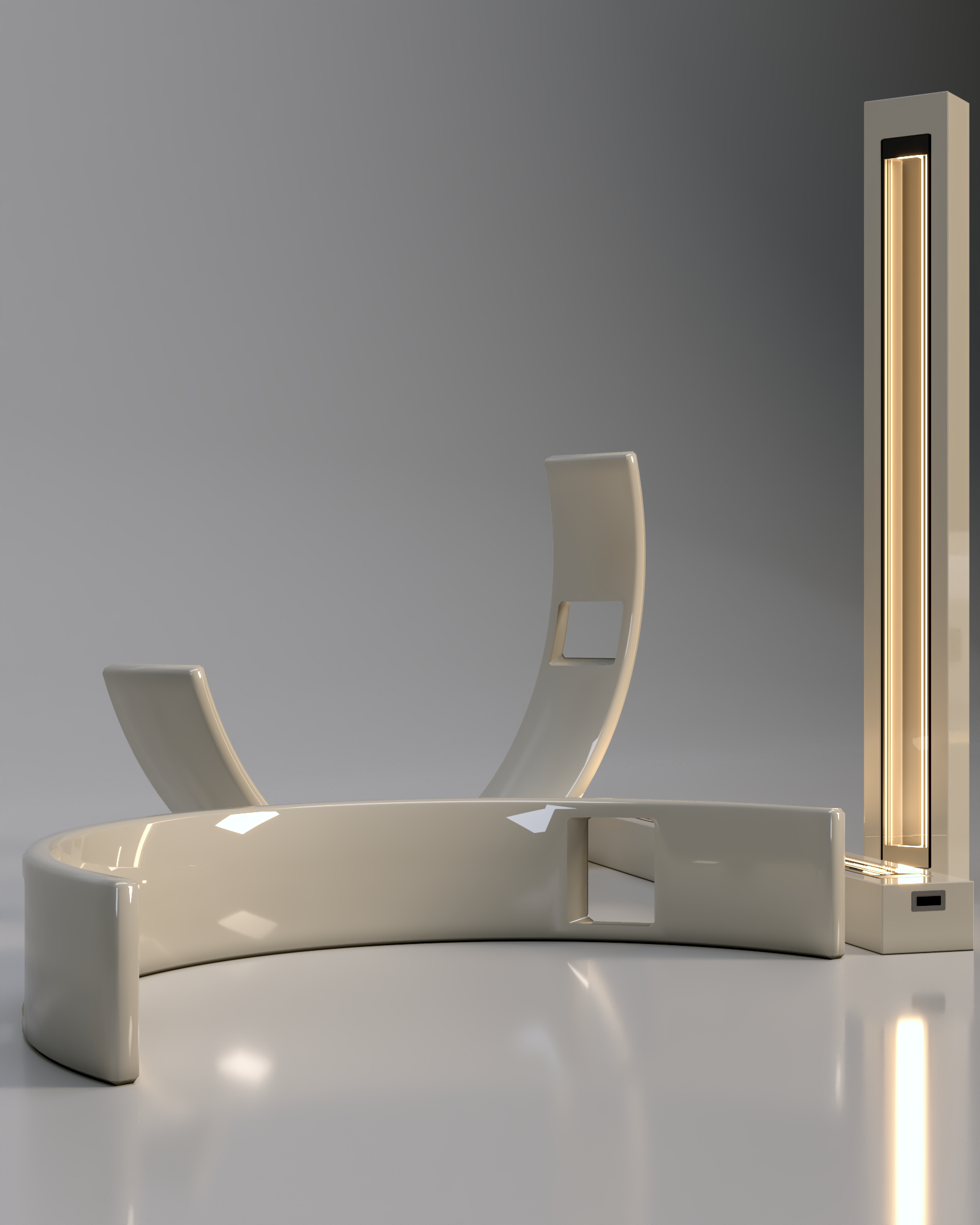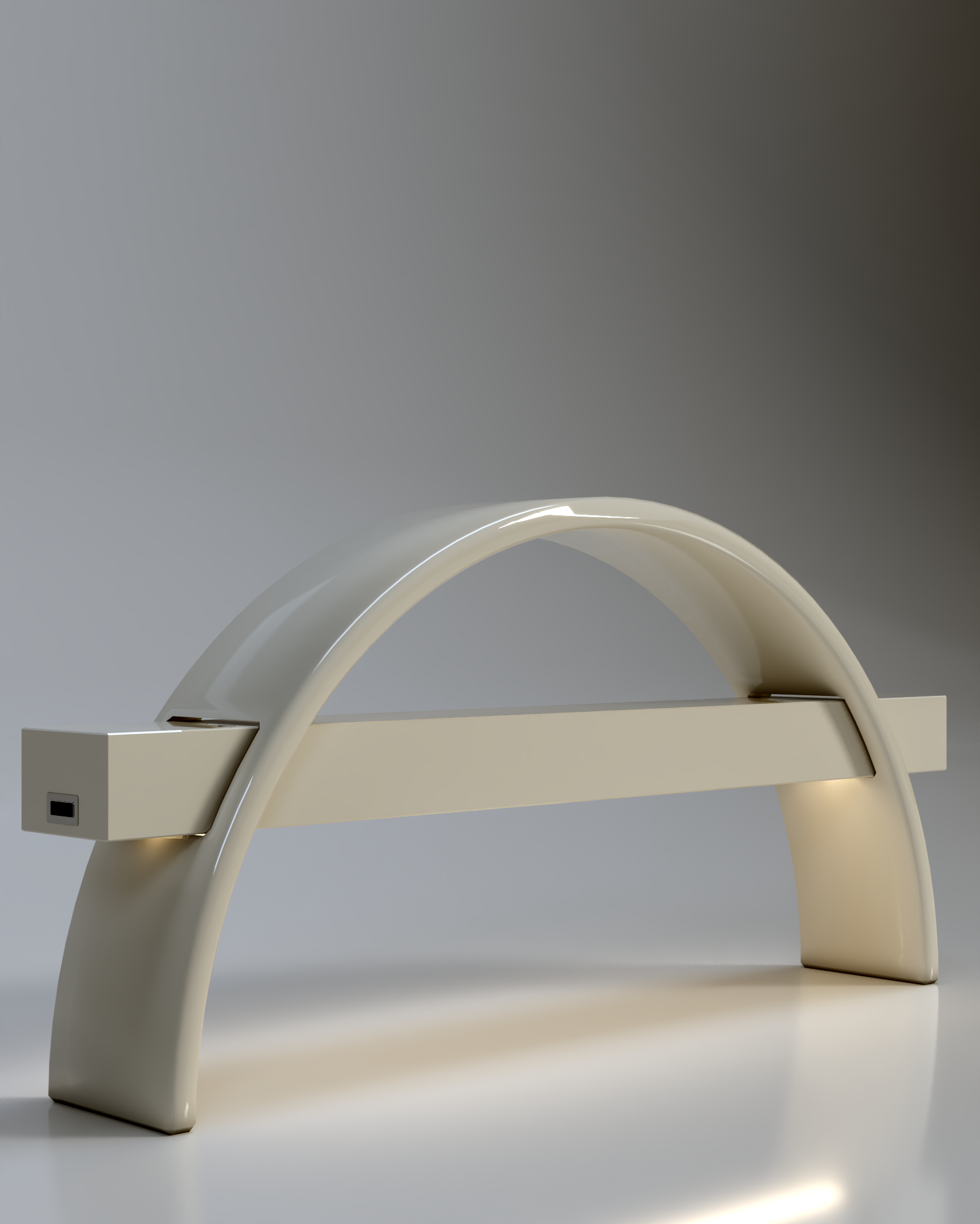 Two series define the system. Ring explores a circular silhouette with an off-axis bar that creates tension, stability, and a graphic identity. Arch introduces a softer curve—an arc that touches down lightly and reads as a quiet gesture on the table. In both, the lamp becomes a conversation starter: a subtle prompt that can dissolve awkward silences and invite interaction without stealing the scene.