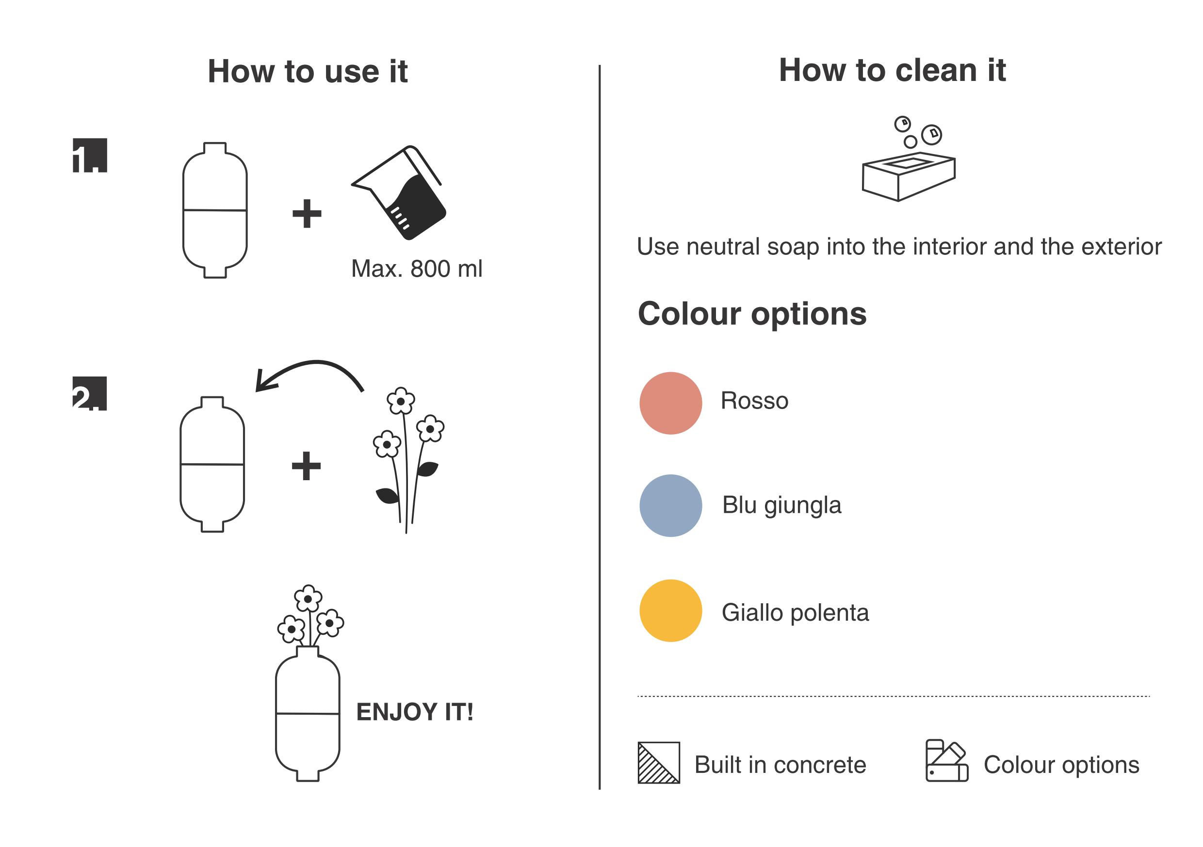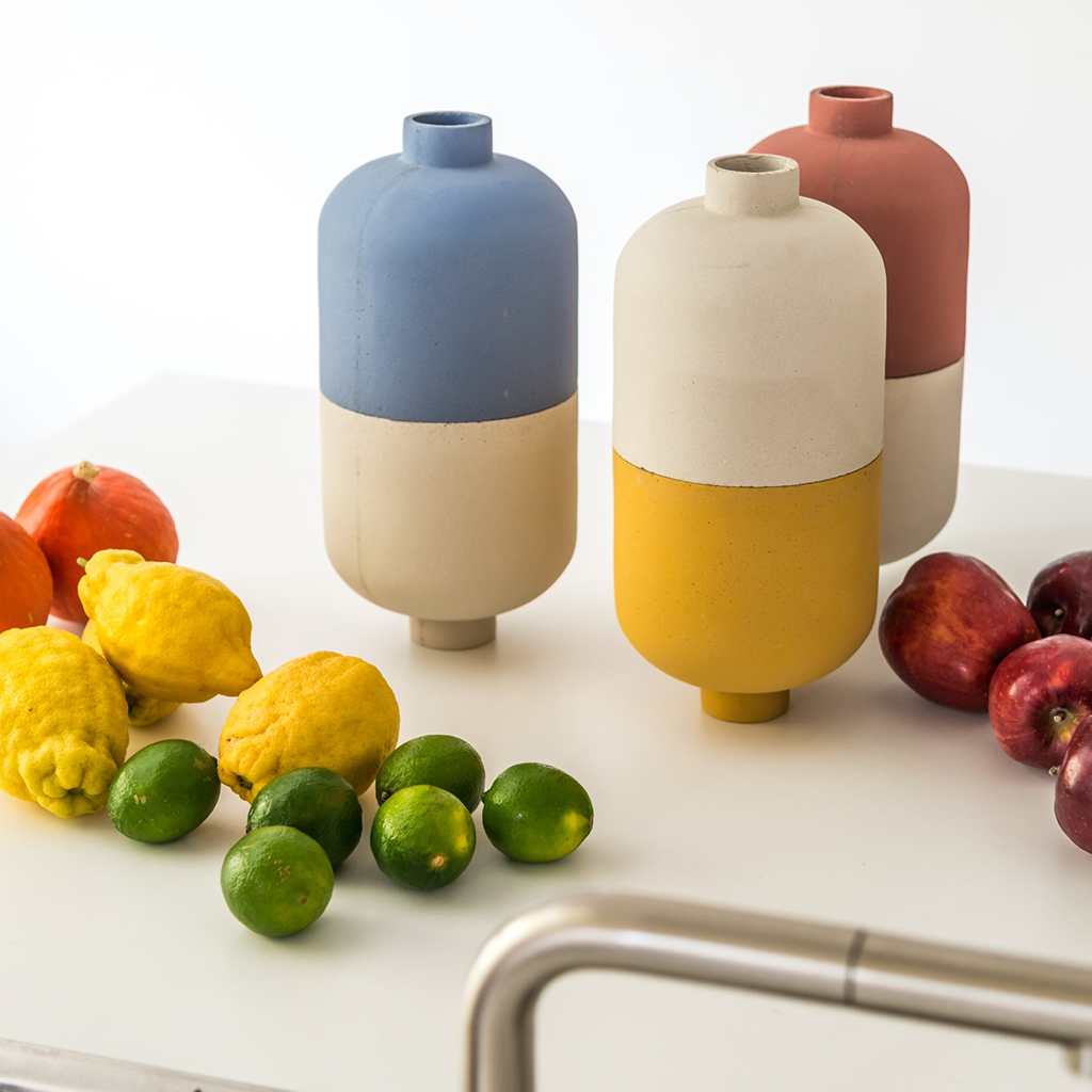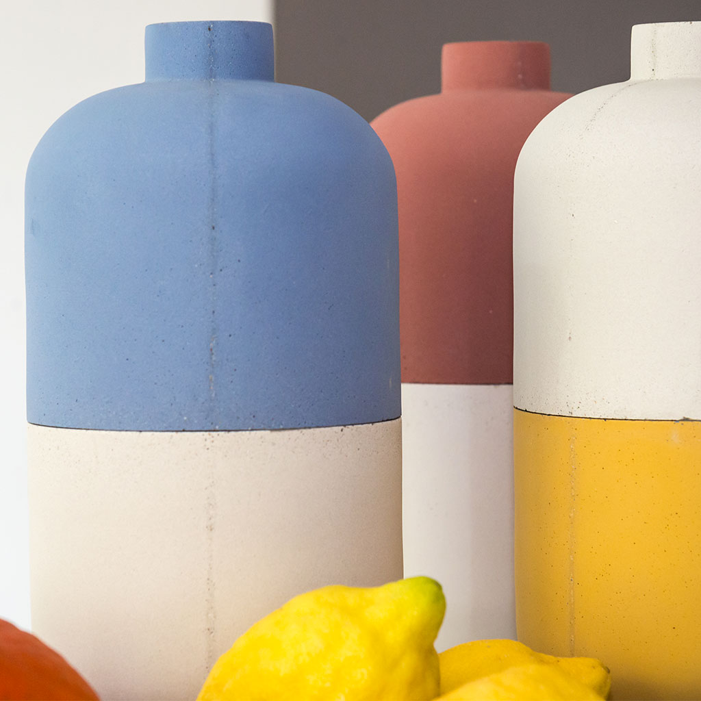 Coppia is a vase made in concrete, thanks to its shape it is a stable object that gives elegance and gives a modern style to the interior space where it is used.